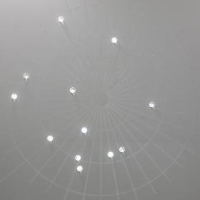 Transvariation (2014) materializes the 12 international research stations in the Arctic continent where the first of the regions ‘s climatological studies were carried out between 1881 and 1884, still used today as a reference (benchmark) in observing our planet’s climatic variations. The map, composed of 12 glass balls containing a luminous device, documents and re-enacts like a partition of light the variation of temperatures observed in the research stations.