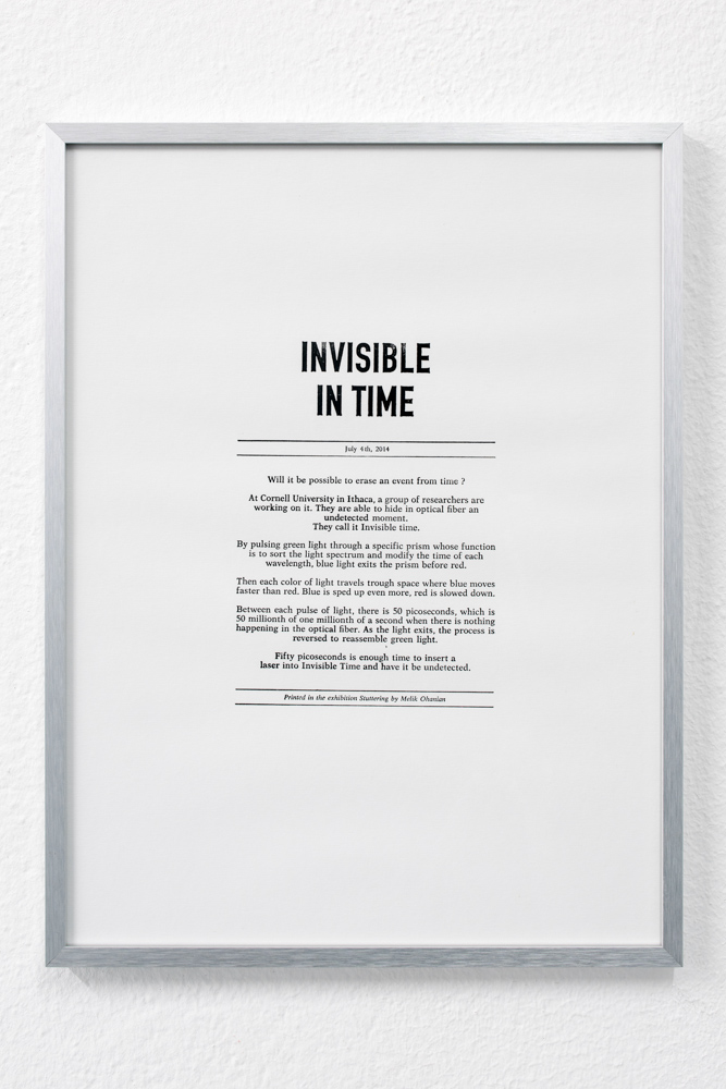 — Ami Barak (extract from Stuttering's booklet at CRAC in Sète, 2014)