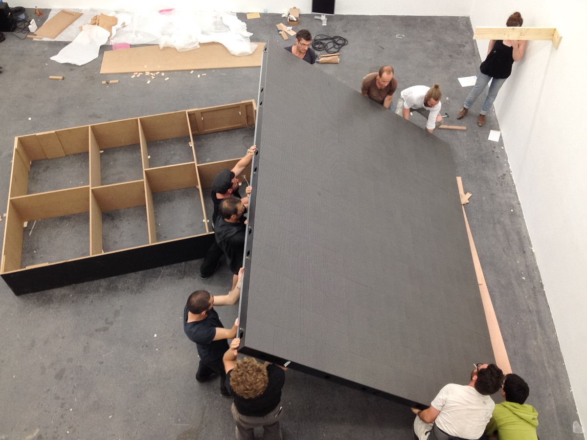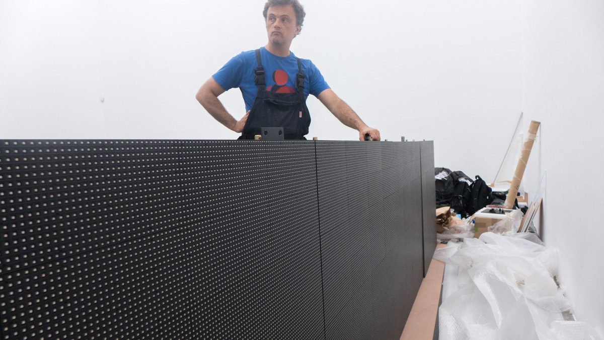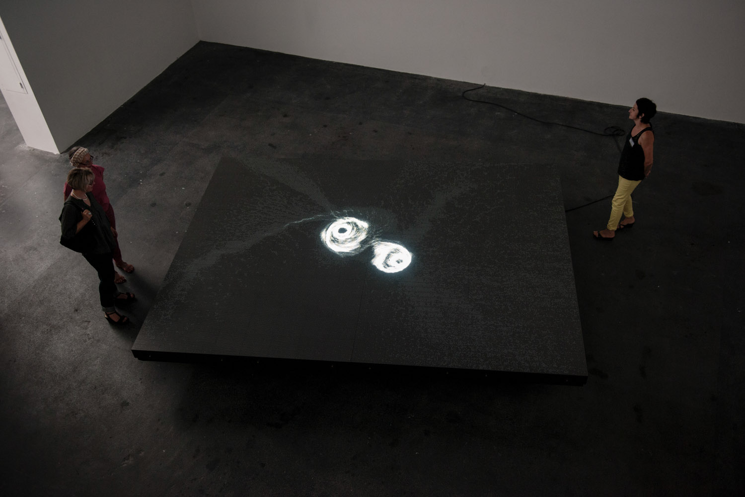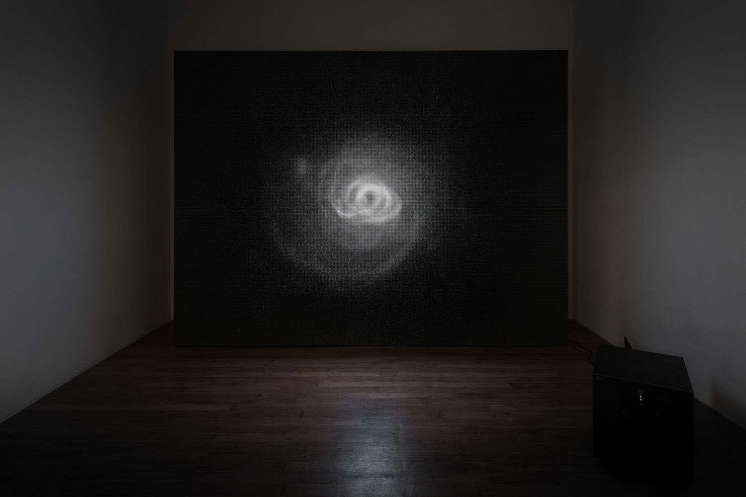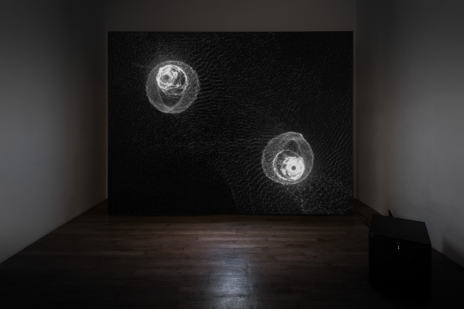 With Modelling Poetry (2012/2014) history is no longer the subject , quite the contrary, it is more about the future, an uncertain, intangible future, but which takes shape in front of our eyes. According to NASA, the Milky Way and the Andromeda Galaxy will collide in approximately 4 billion years. Taking this information as a starting point, Melik Ohanian develops an algorithm translates a number of astronomical parameters into pixels operating like celestial bodies in our Universe. Through making this final disaster visible, we are plunged in a tangible, perceptible time.