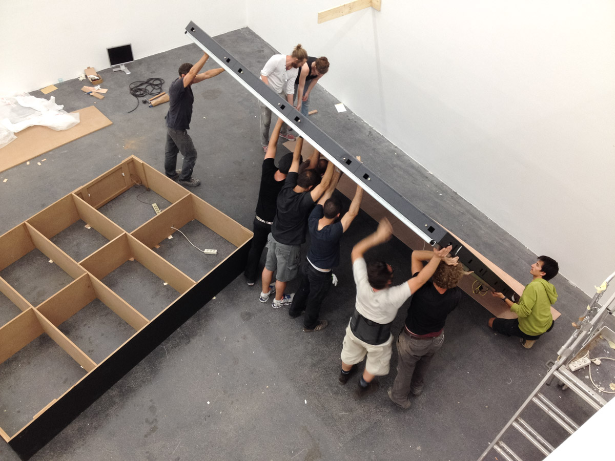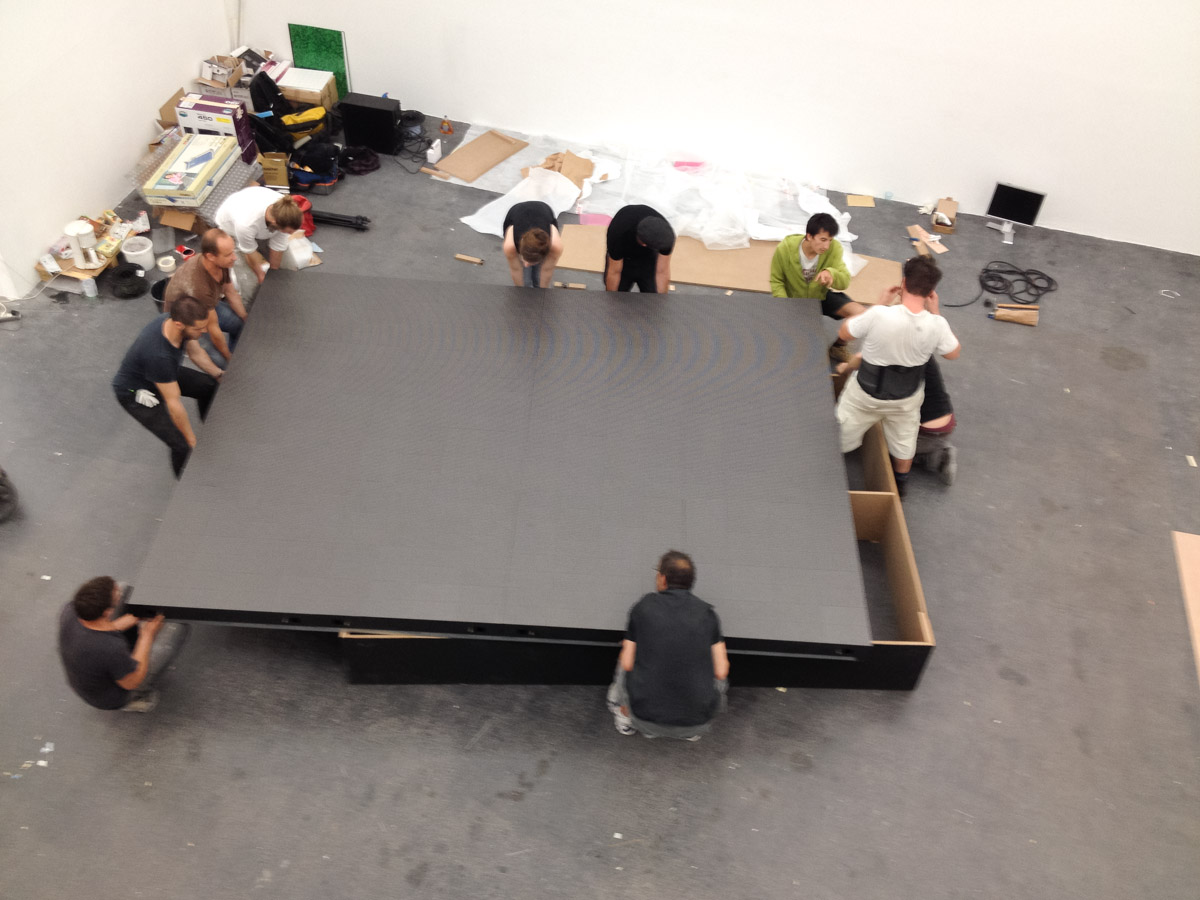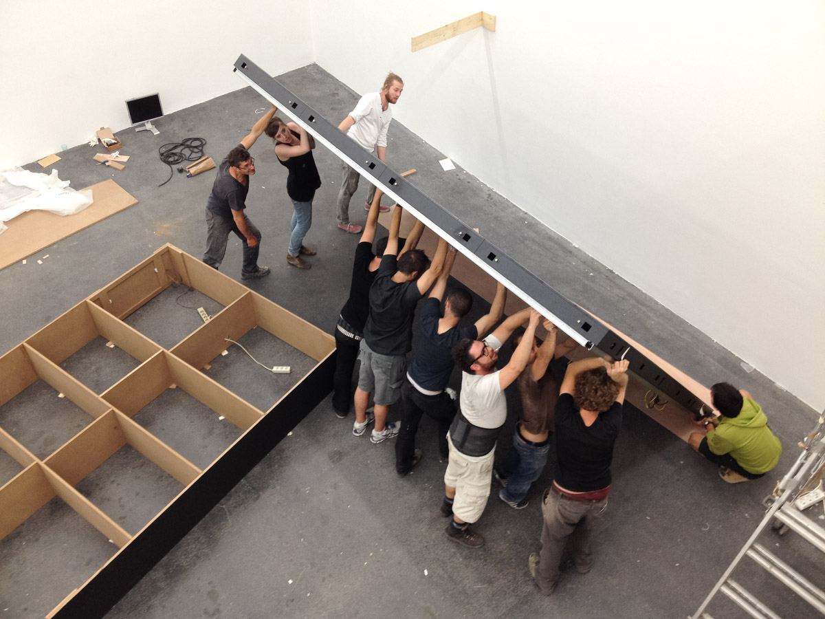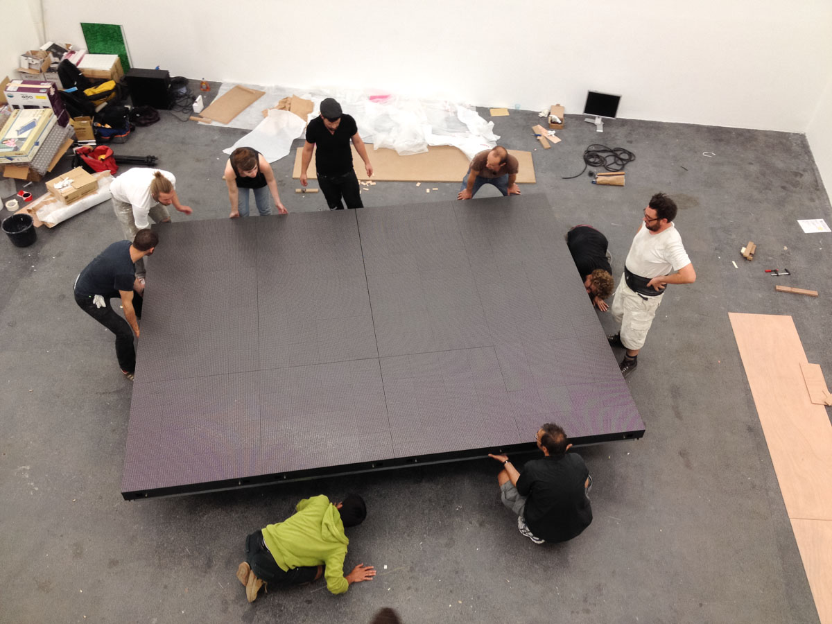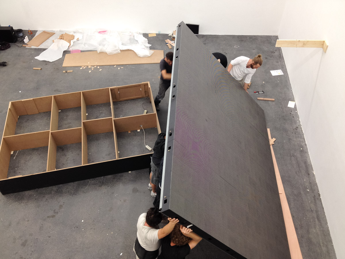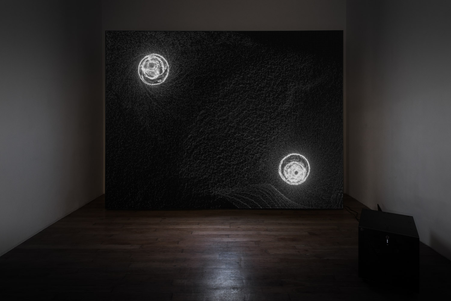 With Modelling Poetry (2012/2014) history is no longer the subject , quite the contrary, it is more about the future, an uncertain, intangible future, but which takes shape in front of our eyes. According to NASA, the Milky Way and the Andromeda Galaxy will collide in approximately 4 billion years. Taking this information as a starting point, Melik Ohanian develops an algorithm translates a number of astronomical parameters into pixels operating like celestial bodies in our Universe. Through making this final disaster visible, we are plunged in a tangible, perceptible time.