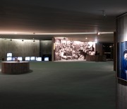 Who do these hands belong to? On the screen there is no way of recognizing them. We look at them: hands of men, hands of men who have lived and above all worked; hands dangling, which are joined, stretch out or clasp, and clap – once. There are nine screens on the ground, as many times two hands which clap, as many men whose hands we cannot see. We see them, then, not right away, we hear them – but what do we hear? More than a sound, a beat, the rhythm of sounds edited in sequences, extremely simple music, as live and spare as this image of hands alone on a dark blue even ground.