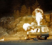 L’événement de l’instant, dilaté, diffracté. Seven Minutes Before est un film emblématique de l’œuvre de Melik Ohanian. Sept écrans en enfilade restituent chacun l’approche en temps réel de sept caméras en mouvement vers un point d’impact unique. Sept points de vue disjoints pour la mise en tension d’une même surprenante action: l’explosion d’un camping-car quelque part dans le Vercors. Mais ce quelque part pourrait être ailleurs : ce décor de montagne générique et la bande son de chacun des sept plans-séquence nous emmènent effectivement ailleurs. En Arménie avec un joueur de kamantcha, au Japon avec une joueuse de koto, auprès d’une enfant jouant au bord de la rivière kwanza en Angola... On est bien dans la même région, partageant une même attente qui se résoudra en une unique explosion, mais les points de vue sont tous différents et tous porteurs d’autres lieux, tous mouvants. Ainsi, le temps qui se dilate sur les 17 minutes qui précèdent l’événement est lourd d’une diffraction de l’espace qui induit aussi une diffraction des récits et qui suggère par conséquent l’idée d’une diffraction du temps lui-même.
