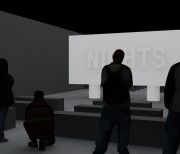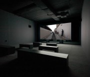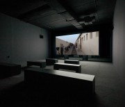 The two versions – a day version and a night version – are projected at the same time, on the two sides of the screen built specifically for the exhibition space.