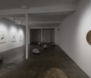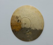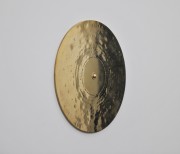 An engraved brass circle Yellow Memory — Learn, 2014 plays with the possible semantic combinations between the verbs to say, to see and to think. This ritornello in three-quarter time repeats the affirmative and negative phrases from the speech in a play on tension between existential and material dimensions.