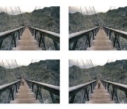 Le cadrage de l’image est lui-même cinématographique. Sa composition fait jouer des forces contraires, puisque le point de fuite creusant le paysage est peu à peu contredit par l’homme qui avance sur le pont. Ces photographies, unies par une structure commune, introduisent ainsi une variable dans l’invariant, une évolution dans la répétition.